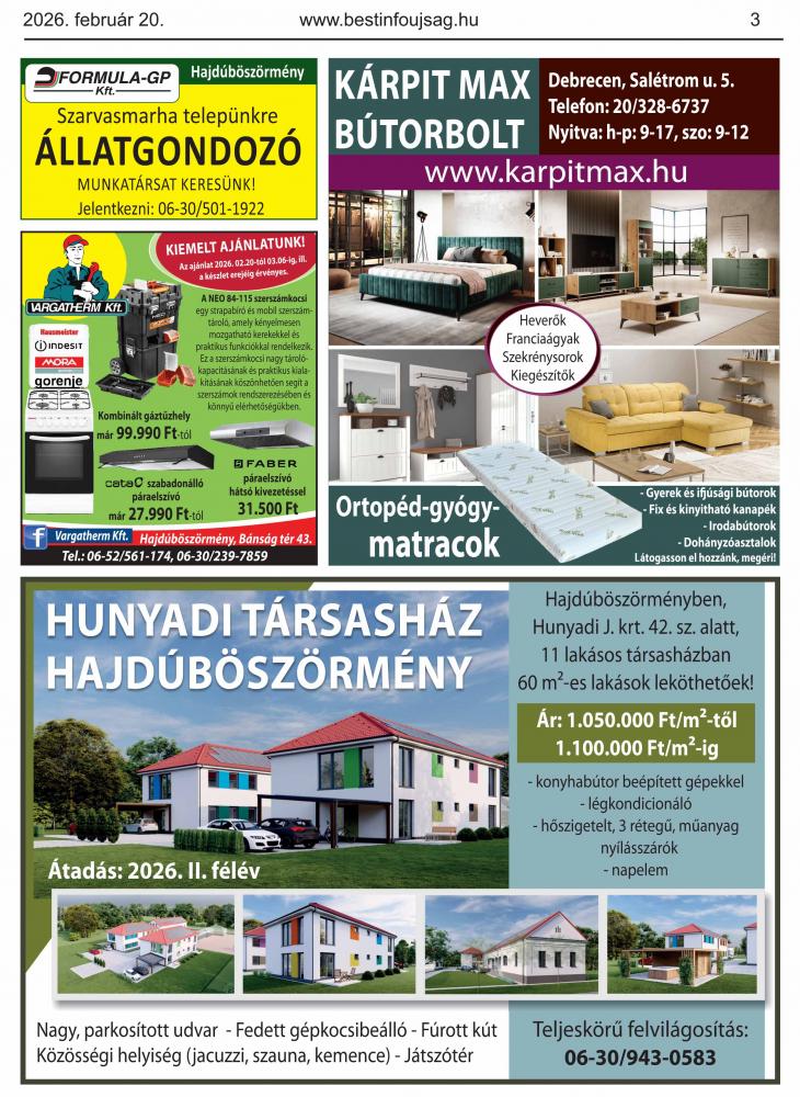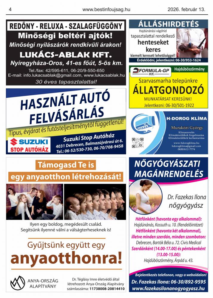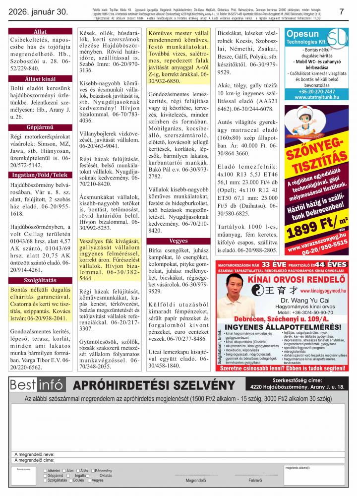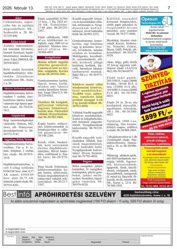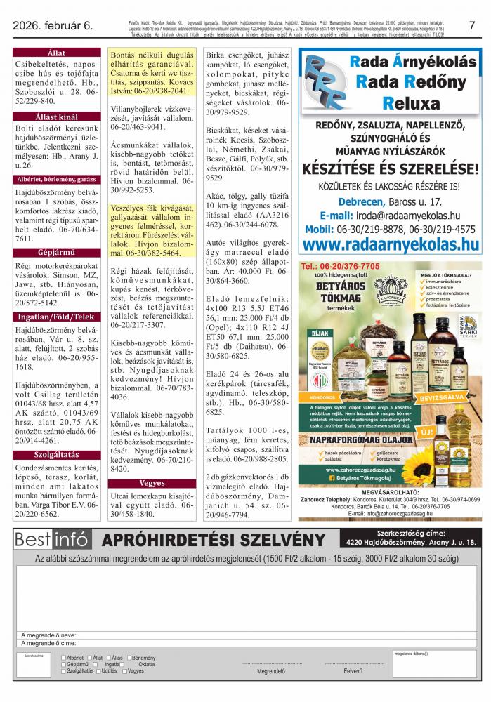 A lapban megjelent hirdetéseket a kiadó előzetes engedélye nélkül felhasználni tilos!