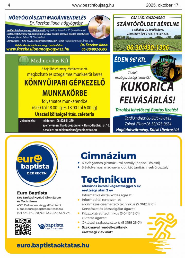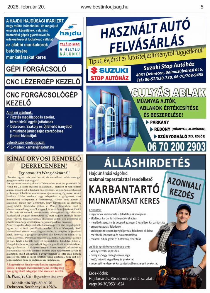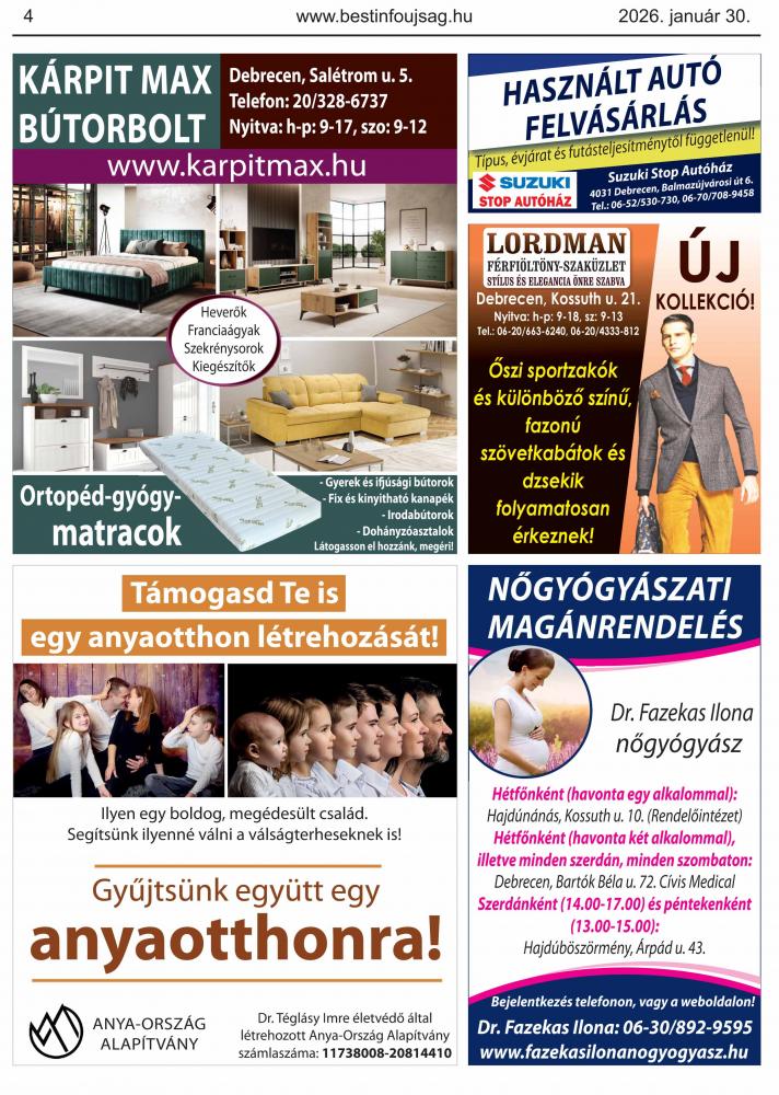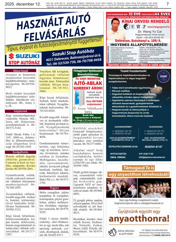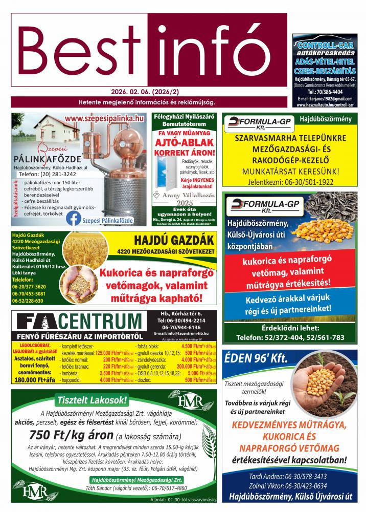A lapban megjelent hirdetéseket a kiadó előzetes engedélye nélkül felhasználni tilos!