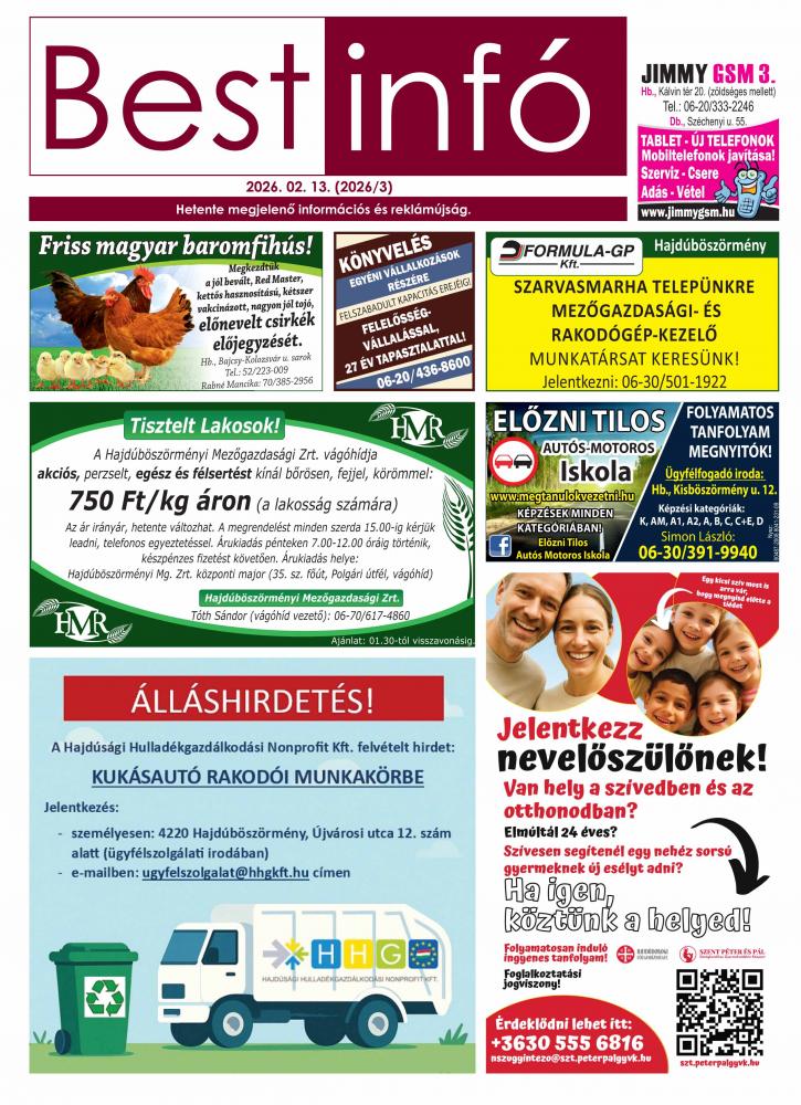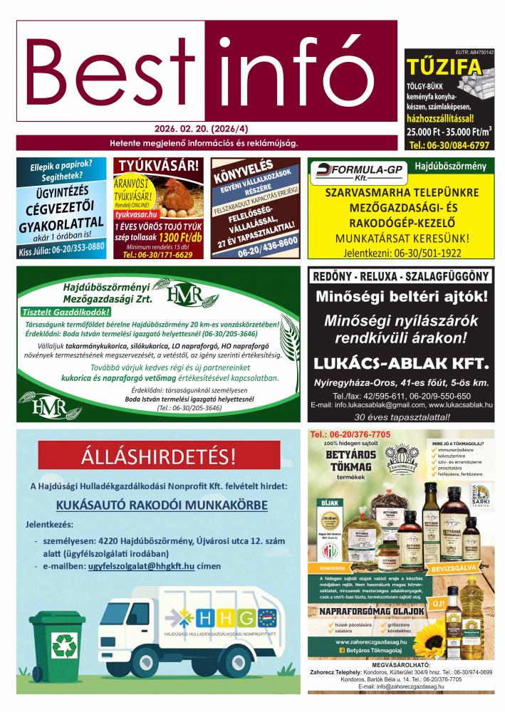 A hirdetések tartalmáért felelősséget nem vállalunk.
